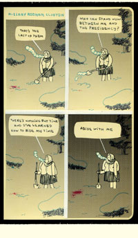 ![]() The Best American Comics 2014 Scott McCloud, Guest Editor Bill Kartalopoulos, Series Editor Table of Contents GREAT COMICS ARE NOT A GENRE JAIME HERNANDEZ Crime Raiders International Mobsters and Executioners from Love and Rockets: New Stories #5 BEN KATCHOR Picnic Now!, Sickroom Reading, and The Hand Laundry from Metropolis Magazine CHARLES BURNS The Hive (Excerpt) GILBERT HERNANDEZ All the Marbles (Excerpt) from Marble Season ADRIAN TOMINE Translated, from the Japanese, from Optic Nerve #13 R. CRUMB and ALINE KOMINSKY-CRUMB High Road to the Shmuck Seat from Drawn Together BEN KATCHOR A 21st Century Still Life from Metropolis Magazine RAISING READERS RAINA TELGEMEIER Drama (Excerpt) FANNY BRITT AND ISABELLE ARSENAULT Jane, the Fox, and Me (Excerpt) FAMILY TREE MIRIAM KATIN Letting It Go (Excerpt) TOM HART RL (Excerpt) from RL #2 SAM SHARPE Mom (Excerpt) from Viewotron #2 NINA BUNJEVAC August, 1977 from Heartless STRANGE ADVENTURES MARK SIEGEL The Mermaid in the Hudson (Excerpt) from Sailor Twain, or The Mermaid in the Hudson BRIAN K. VAUGHN AND FIONA STAPLES Saga Chapter 7 (Excerpt) from Saga #7 BRANDON GRAHAM Multiple Warheads: Alphabet to Infinity #1 (Excerpt) TED MAY Dimensions from Men's Feelings THE BOOK OF THE YEAR IS NOT A BOOK CHRIS WARE Building Stories (Excerpt) from Building Stories TESTIMONIALS JOHN LEWIS, ANDREW AYDIN, AND NATE POWELL March: Book One (Excerpt) FRANK YOUNG AND DAVID LASKY The Program Is Morally Good (Excerpt) from The Carter Family: Don't Forget This Song ED PISKOR Hip Hop Family Tree (Excerpt) from Boing Boing WEBCOMICS ALLIE BROSH Depression Part Two (Excerpt) from Hyperbole and a Half EVEN STRANGER ADVENTURES MICHAEL DEFORGE Canadian Royalty from Lose #4 THEO ELLSWORTH The Understanding Monster–Book One (Excerpt) THE KUIPER BELT RON REGE, JR. Is There Silence?, The Implications of Making Something from Nothing via the Spiritual Realm AND This Is Magic–This Is Alchemy from The Cartoon Utopia C.F. Face It from The New York Times Opinionator VICTOR CAYRO Bittersweet Romance (Excerpt) ONSMITH Whistle While You Work . . . or Think of Death from Study Group Magazine #2 GERALD JABLONSKI Schweinhund AND Howdy, His Nephew Dee Dee and a Friend of Howdy's Nephew from Cryptic Wit #3 LALE WESTVIND Hyperspeed to Nowhere, Return to Entropy (Excerpt) from Hyperspeed to Nowhere #2 G.W. DUNCANSON Untitled Selections from Cash Money Cartoons AIDAN KOCH Blue Period from Sonatina #2 ERIN CURRY Ambient Air (Part II) from Ambient Air MEMORY BOXES RICHARD THOMPSON Cul de Sac, September 17–23, 2012 from Cul de Sac SAM ALDEN Hawaii 1997 from samaldencomics.tumblr.com |